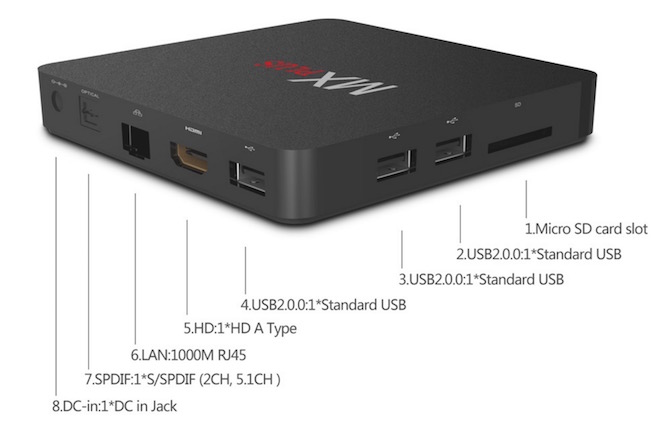 MX Plus TV Box comes with all useful ports that you may need in any smart TV Box, like HDMI, Optical, USB2.0, DC 5V, Micro SD Card Slot, LAN etc.. You can also connect Mouse and Keyboard to MX Plus TB Box to have full control on anything you are doing.