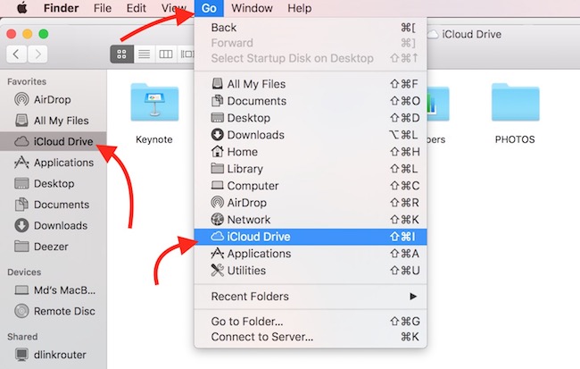 - Method 3 : Launch Finder, click on Go option in the menu bar, and select iCloud Drive.