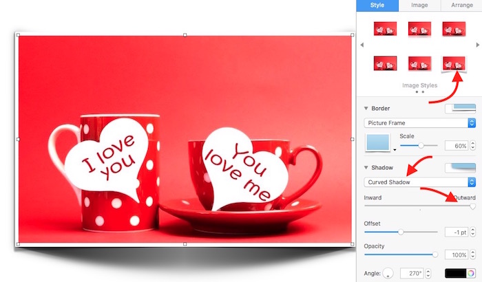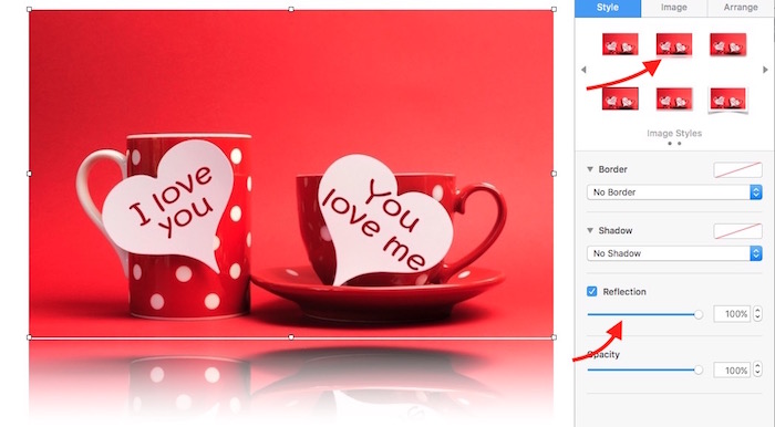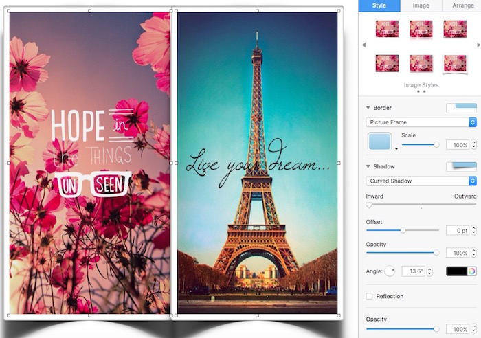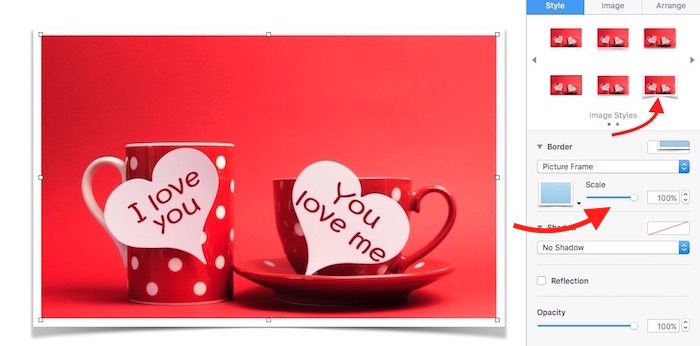 - Add Photo to Keynote app, select it by clicking, and then select the second image under Style tab on the right.