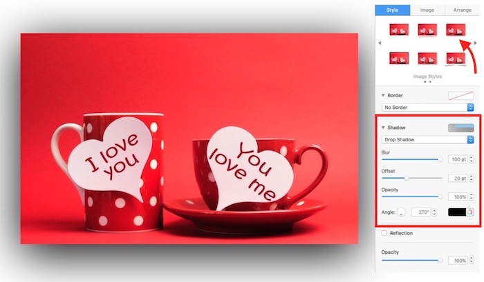 - Select the image clicking on it, and then click the third image icon under style tab.