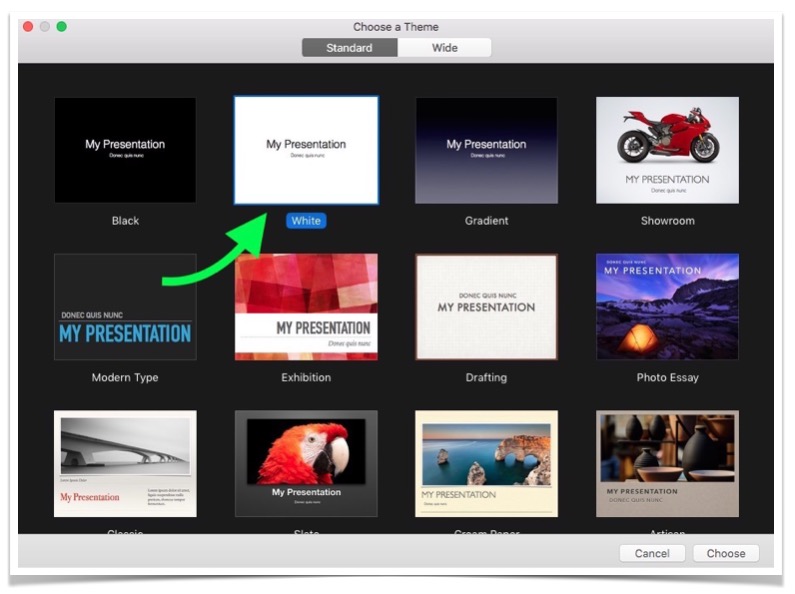 - Now click on Choose option (or you can also double-click on a theme to use it).