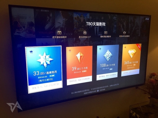 Some of the Smart TVs got Alibaba’s TBO (Tmall Box Office) after the software update. TBO is available for paid subscribers only. The monthly subscription fee for unlimited video streaming service is 39 Chinese Yuan ($ 6.14), or you can save some when you pay together for whole year 365 Chinese Yuan ($ 57.42). The payment can be made using smartphone via Alipay. You need to scan the QR Code and follow the instruction.