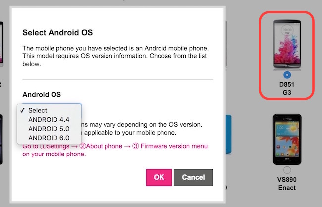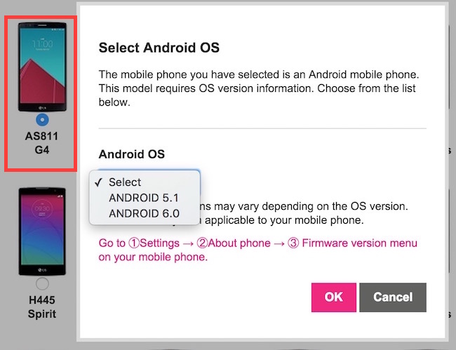LG has not said anything officially about the Android 6.0 Marshmallow update, but we have discovered something. When you visit LGWorld.Com, you are asked to select country. We selected United States, and it took us to the page where we found apps and games. At the right hand side, it asks to select phone. When we clicked there and selected smartphone, we were asked to select Android OS version as well. What a surprise, Android 6.0 was there. We were so curios, and went through almost all the devices, but only 2 of them has that version to select.