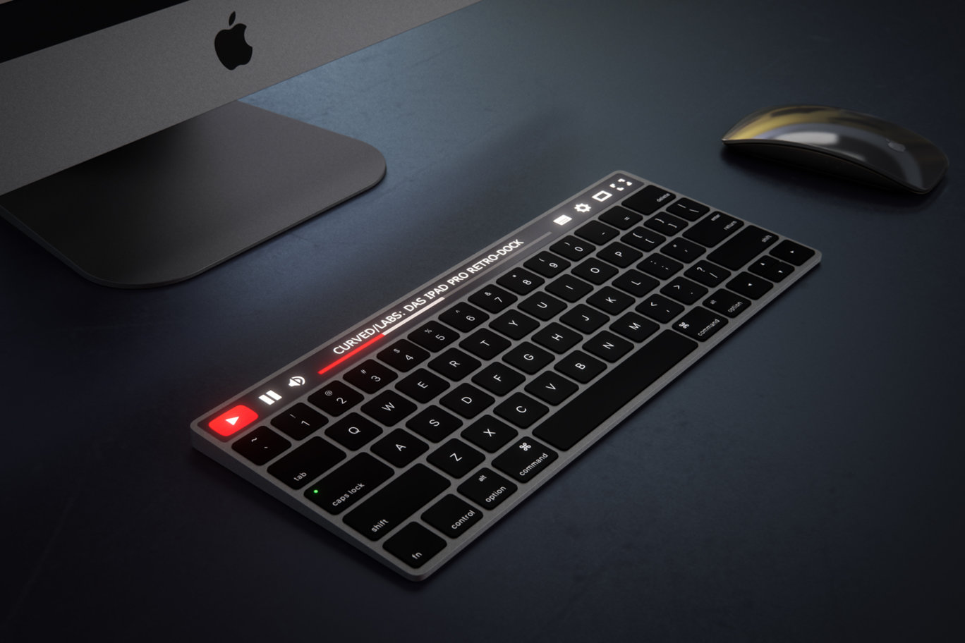 So far we have seen concept design of MacBooks with OLED Bar and also the first expected accessory that users may want after the launch of such models. However, Curved.de has designed some concept images for iMacs where Magic Keyboard has been redesigned. The Magic Keyboard may also feature OLED Touch Bar, and here are the concept design how it may look like;