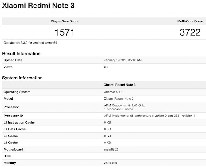 Snapdragon 650 is a hexacore CPU (2 cores X ARM Cortex A72 + 4 cores X ARM Cortex A53) based on 28nm HPm technology. It supports LPDDR3 RAM 933MHz dual-channel. Latest Xiaomi’s Redmi Note 3 Pro has been launched with this CPU. However, Geekbench seems to have some issue showing the correct Snapdragon part number on its test. Redmi Note 3 Pro has always appeared on Geekbench with MSM8952, that is Snapdragon 617. Snapdragon 650 Geekbench 3 single-core benchmark score is 1571, and multi-core Score is 3722.