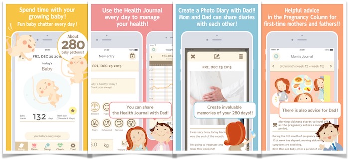 The app allows recording your 9 months of pregnancy period in a beautiful diary. The app requires no registration or subscription, and users can download and use for free. You can record every day in a beautiful way including notes, pictures etc.. If you register twins, the illustrations will automatically change to twins. Father can also download the app and provide invitation code to Mother, and the app allows to enter invitation code and connect 2 apps together. Once connected, data/journal can be shared with each other. The app also provides some valuable tips and suggestions.