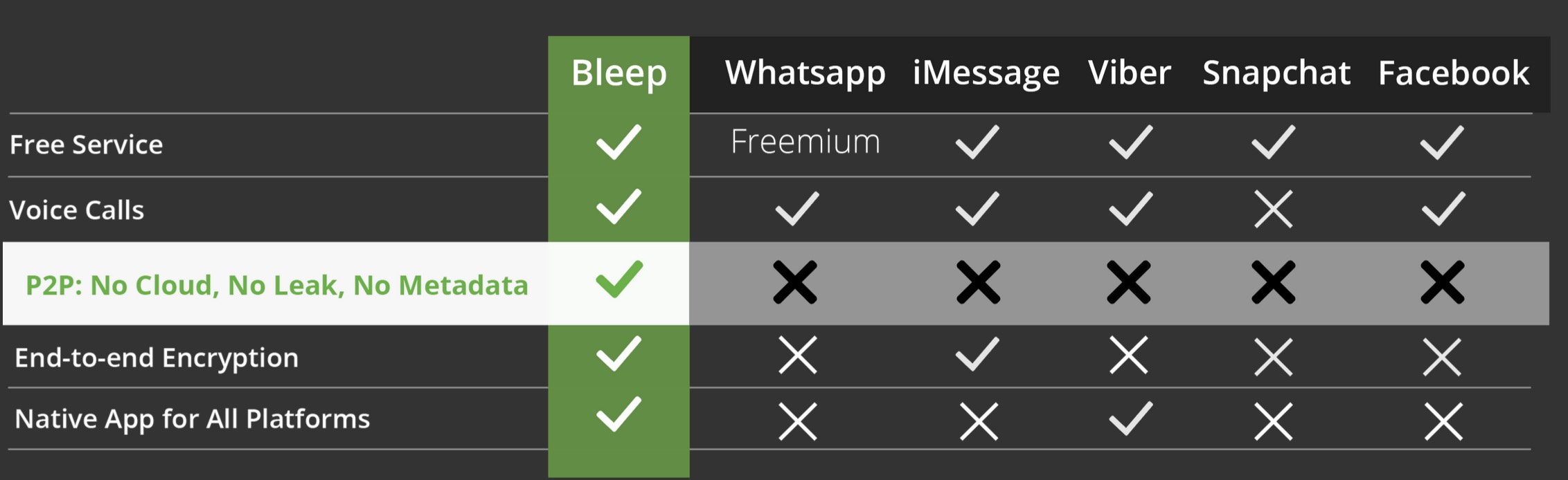 BitTorrent Bleep is a messaging service that can be used to send text, photos and can also be used to make VOIP Calls. It is also free and available for all the platform: iOS, Android, Mac and Windows. You can also use the app without registration just entering a nick name, but this makes it really difficult to find people and add anyone. So the best way to use it, you can register with your mobile number or email address. The below image defines how BitTorrent compares its Bleep Messaging service with other messaging app.