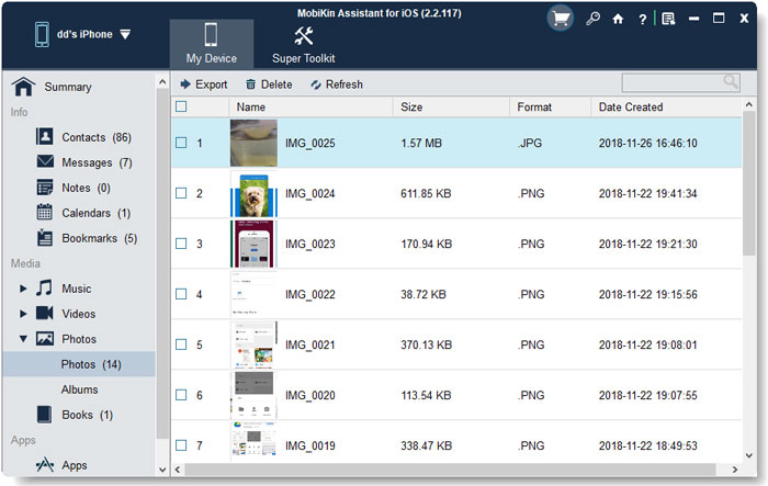 You can easily import photos from iPhone to Windows using MobiKin Assistant for iOS. It is a useful application and recommended by most users. It lets you preview the photos of the iPhone on the Windows 10 computer and you can transfer photos from iPhone to computer without iTunes. Besides, you can also manage many other iPhone files on the computer, such as contacts, messages, notes, calendars, bookmarks, music, videos, books, apps, and so on with MobiKin Assistant for iOS.