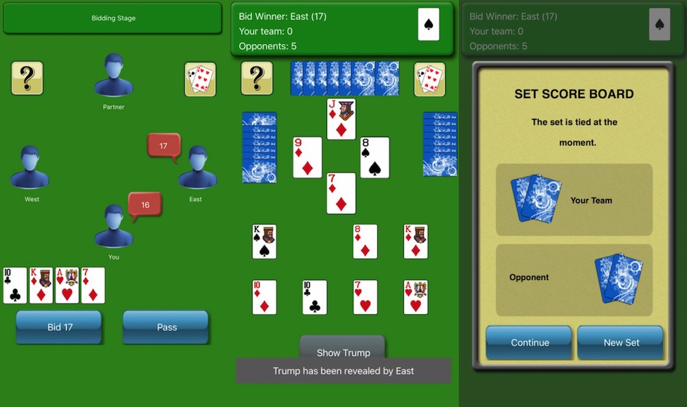 In this game, you will have to make a smart bid and achieve it. For example, if you bid 3, you will have to win at least 3 times to get 3 points, else you will get -3 points. After some certain tables, if you score more, you will be the winner. You will are always supposed to show the higher card in this game. If you don’t have the certain type of card, you can use a Spade card to win. Spade Card is always higher in value.