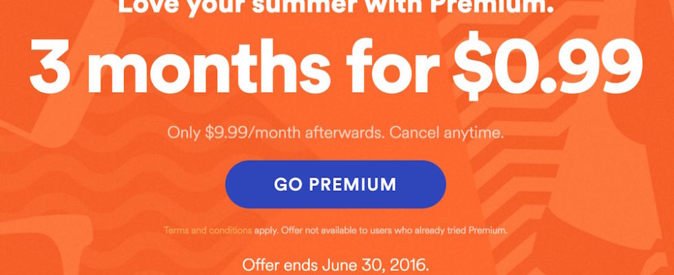 Get 3 months Spotify Premium for $0.99 or £0.99
