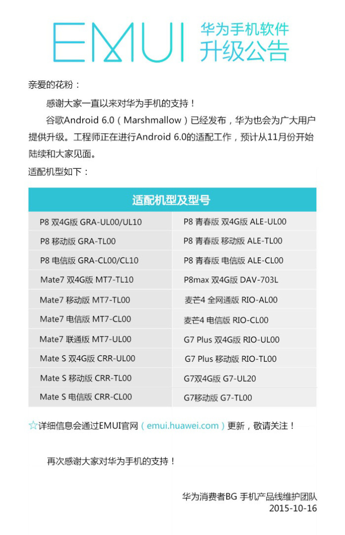 Confirmed list of Huawei Smartphones to get Android 6.0 Marshmallow update