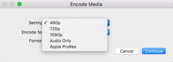 - Select the resolution you want (480p, 720p, 1080p or Apple ProRes), or you can convert the video into sound only file