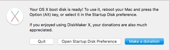 - Now wait until you see the notification from Disk Maker that Your OS X boot disk is ready
