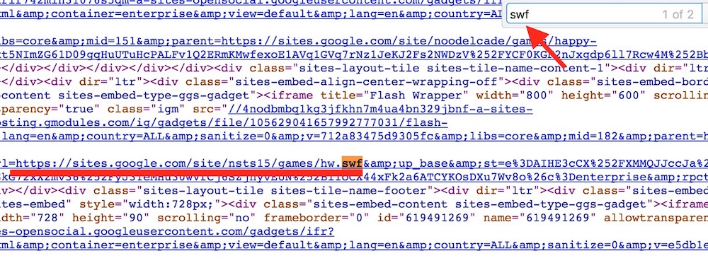 - Now look for the .swf file. You can use cmd+f on Mac or ctrl+f on Windows.