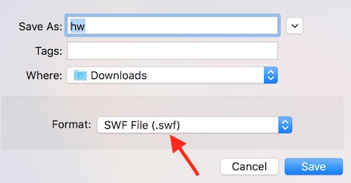 - You will get the saving window, where you can type a name for the file. However, make sure it shows SWF file.
