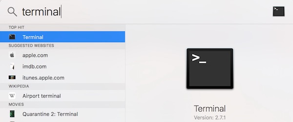 - Launch Terminal on Mac. If you can’t locate Terminal, just press Command+Space key together, then type Terminal, and then press Enter key.