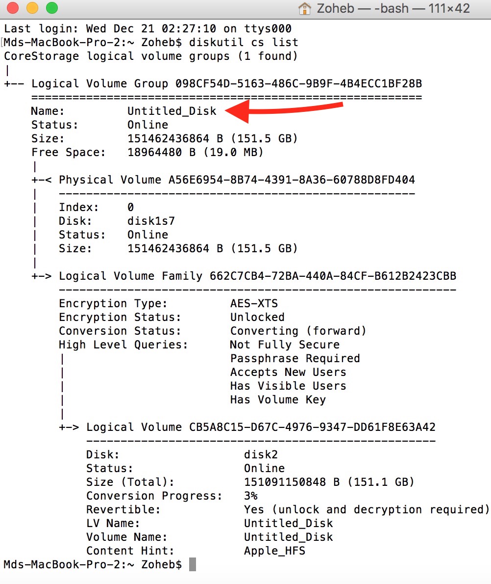 diskutil cs convert /Volumes/Untitled_Disk -passphrase
