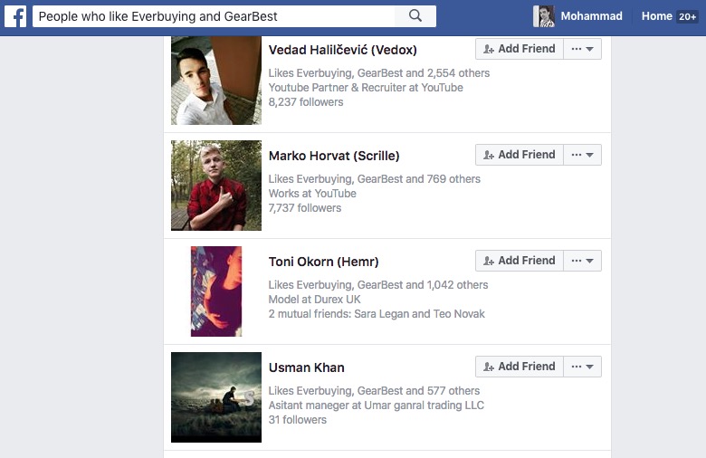 If you want to find FaceBook Users who have liked multiple pages, you can customize the result typing “People who like Page1 and Page2” in the search field.