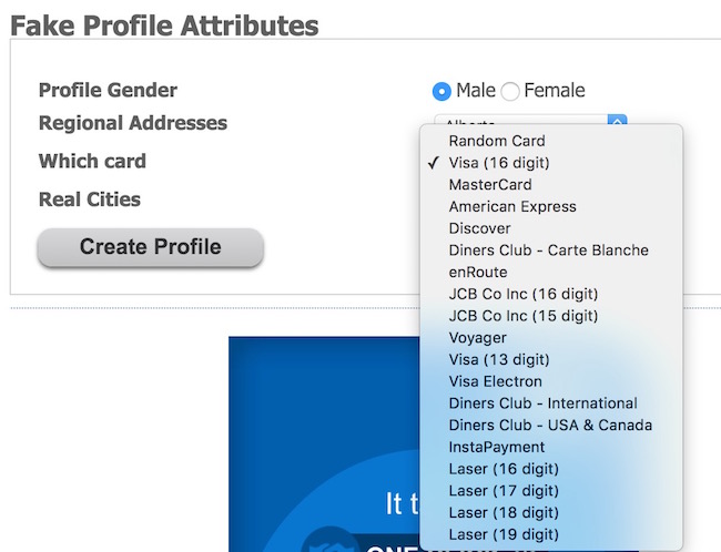 This one is another website that allows to do similar stuff, but they have little more do. It also allows to customize the ID with Gender, Country, Real Cities, but has one more option as Card Type. You can select to generate the ID for a specific card, like Visa, Master, Discover etc..