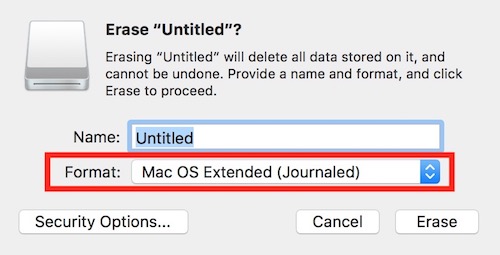 Note: If you get any error, please format it once keeping the default option (Mac OS Extended Journaled), and then format again selecting MS-DOS (FAT) option.