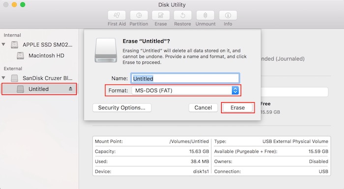 I am Unable to Format USB Flash Drive on Mac Selecting MS-DOS (FAT) Option, What to do?