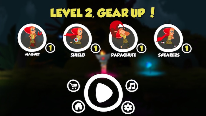 Powers : Before the game starts, you are shown some powers that can be used during game, Shield, Parachute, Sneakers and Magnet. You can tap on any or all to use (if you have), else you may need to get those powers using coin, or buy coin paying real money, and then get those powers.