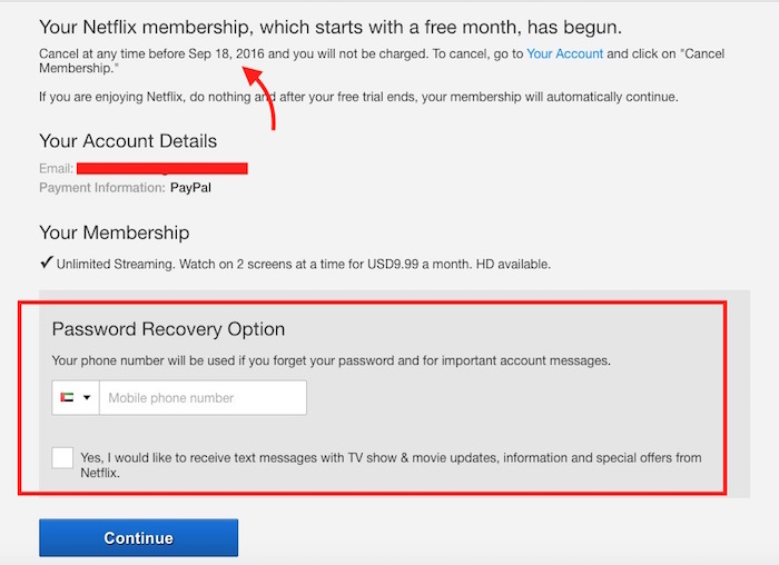 - Netflix will ask to enter your mobile number to receive the verification code. It will help to recover Password if you forget in future. The screen will also show when the subscription will renew