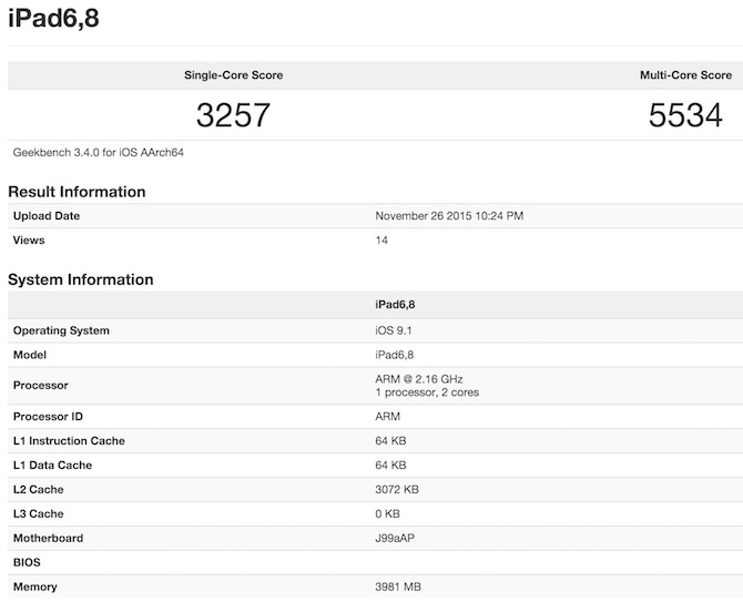 Apple A9X is the best chipset of that any smartphones or tablets features so far, and we don’t see any indication that 2016 would bring any CPU that could beat Apple A9X except Apple A10X. It features a 2.26 GHz dual-core CPU.