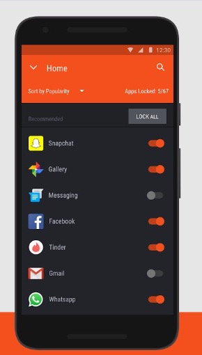 - After you select the profile, tap on Start Locking Apps (check the screenshot above). Now you will see all the apps you have on your device, enable app locking for those apps you want to protect