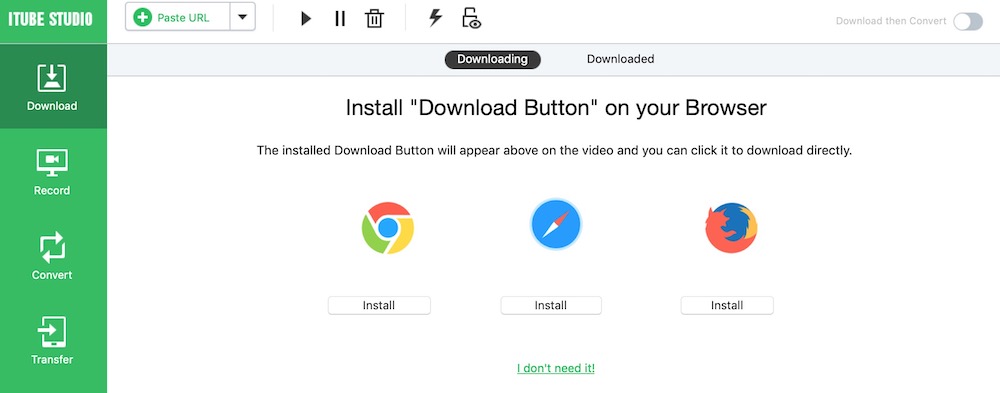 - Now launch the iTube Application and the first thing you will see is that the suggestion to get the browser extension to Download videos quickly from Browser without opening the app. If you want it, hit the Install option or just click on I don’t need it.