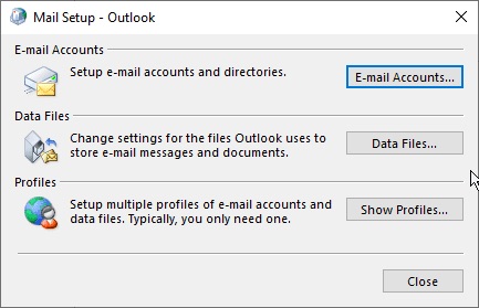 • In the Mail Setup dialog box, click the Show Profiles button.