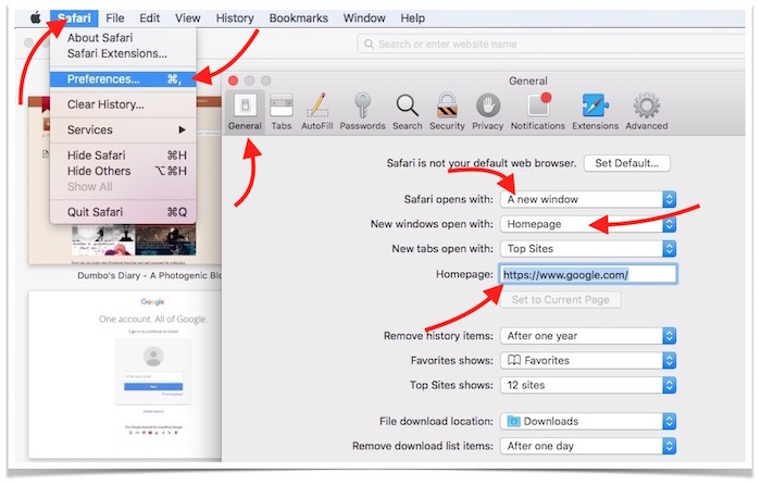 - Quit safari browser, and launch again. Google Search Engine web page will open when you launch Safari.