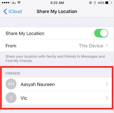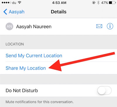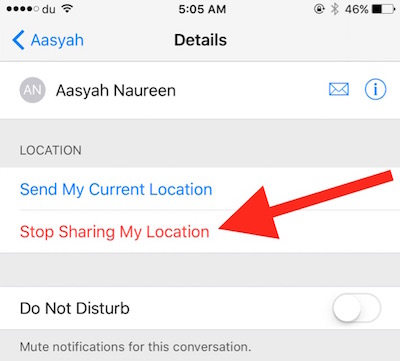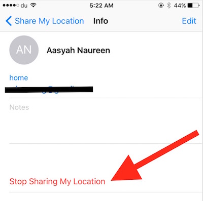 - Now if you want to Stop Sharing location for any of these contacts or for both, you need to tap on contact name, and tap on Stop Sharing My Location