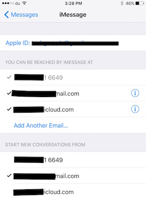 The option “You can be reached by Message at” shows all the address and mobile number that can be used to send messages to me. Mobile number is always disabled, because SMS can’t be sent to email addresses. So you can’t uncheck this. If you don’t want anyone to use your email address or iCloud Address to send iMessage, you can uncheck one or both.