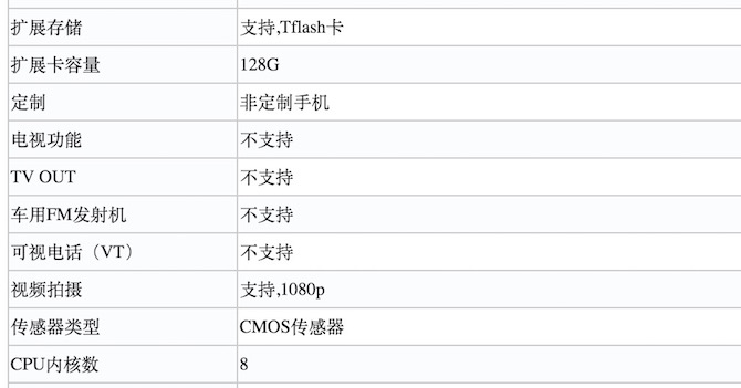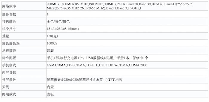 Screenshots of tech specs from Tenaa, click to enlarge