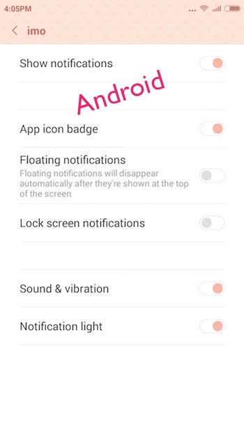 Go to Settings –> Notifications –> imo. Now you can manage or disable notifications and sound for imo app