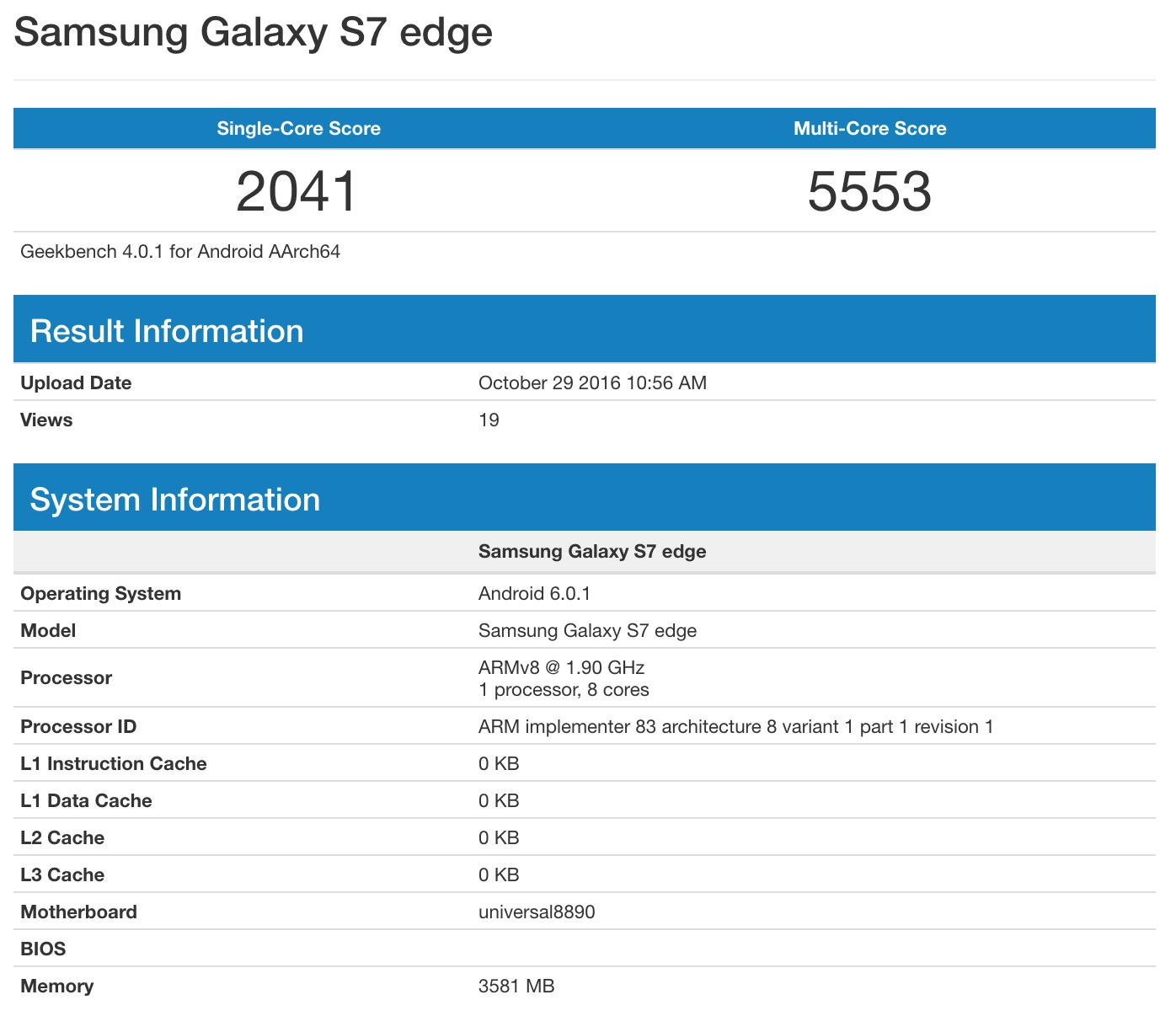 - Exynos 8890 in Samsung Galaxy S7 Edge : Octa-core (4 x 2.3 GHz Mongoose + 4 x 1.6 GHz A53), Mali-T880 MP12 GPU
