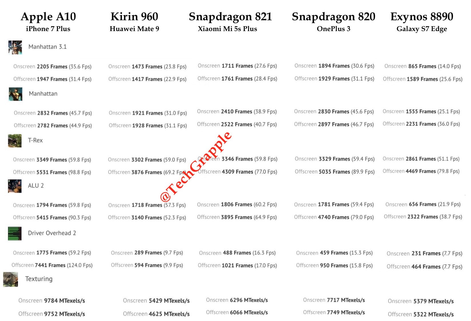 Kirin 960 vs Snapdragon 821 vs 820 vs Exynos 8890 vs Apple A10