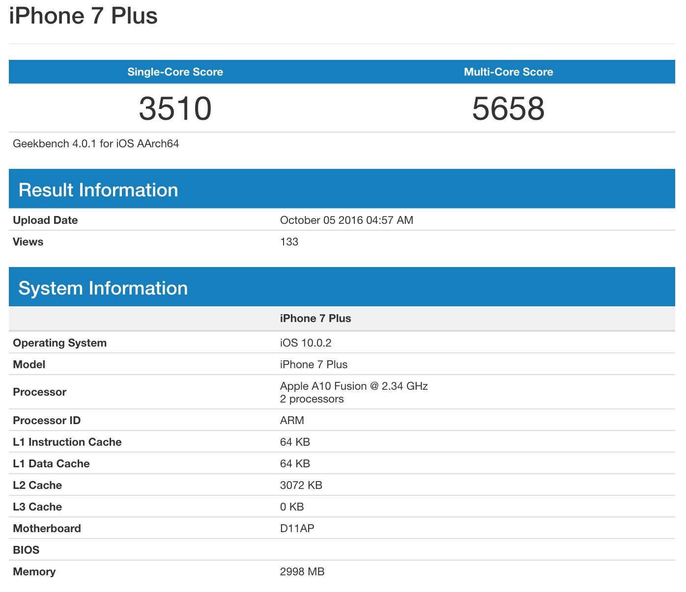 - Apple A10 Fusion in iPhone 7 Plus : Quad-core (2 x 2.34 GHz + 2 Small Cores), six-core GPU