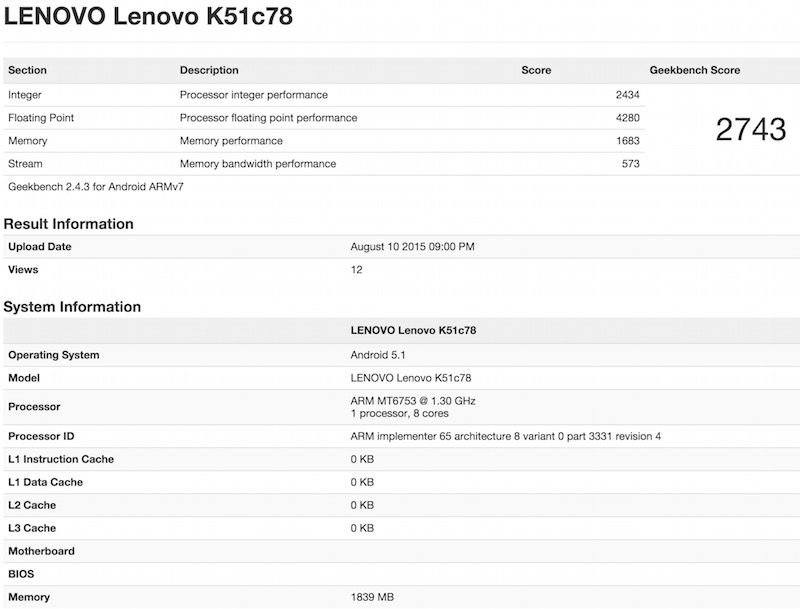 Lenovo k51678 has also gone through Geekbench 2 benchmark performance test, and it scored 2743 overall. This much score is not bad to perform a device well, but the price tag will matter. We all know that Lenovo’s devices are not that expensive, so you can expect it to be available in affordable price. The best part of Lenovo K51c78 is the display, it still features a 1080 pixel display that will come in range for those users who have tight budget.