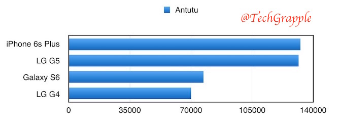 LG G5 Antutu : 131648 (based on Snapdragon 820 Benchmark)