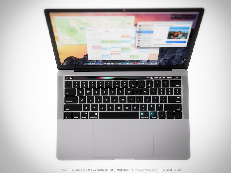 Apple has been rumored to add OLED Touch Bar to new MacBook Models. MacOS Sierra API Differences documentation has also hinted OLED Touch Bar feature. Based on this rumor some images have been designed by Martin Hajek. Here is how the designer thinks new MacBooks may look like;