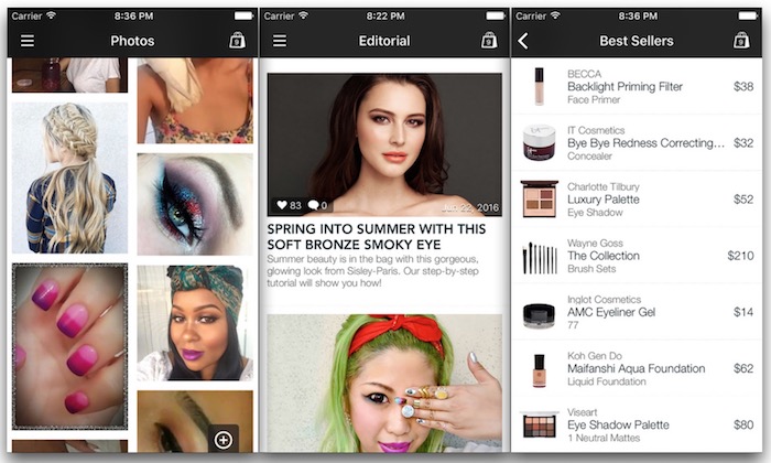 - Shop, Brands, and Reviews : These are 3 separate categories that allow reading reviews of beauty products from different brands, and buy them online.