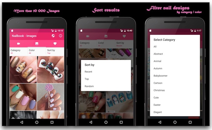 - You can sort/filter the Videos and Images by Categories, Nail Polish Color, Recent. Top, Random etc..