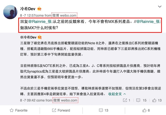 A Chinese Tech Leakster mentioned on Social Media (Weibo) that Meizu has no plan to release MX Series model this year. Here is the screenshot if you can read Chinese;