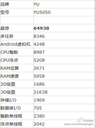 Micromax YU5050 Antutu benchmark score has been revealed as well as technical specifications. It scored 64938 in performance mode, 57242 in balanced mode. These scores are obvious when a device has Snapdragon 810 SoC inside. You can check these screenshots