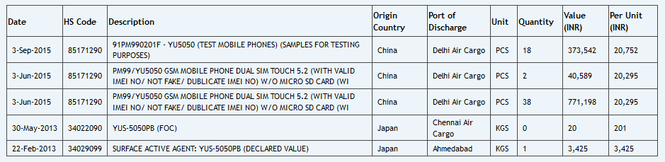 The pricing information of YU5050 has been leaked via an import website “Zauba.” The items’ import list shows Micromax YU5050, that has been imported for testing purpose. The price for the device is listed as 20,752 INR (around $ 311).