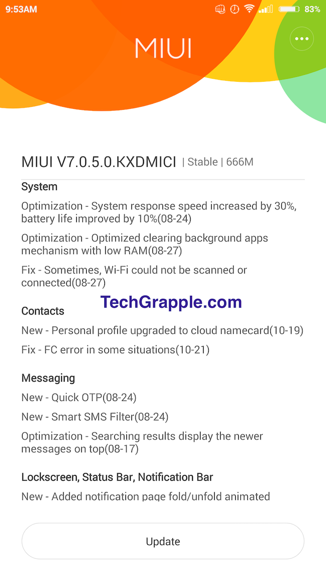 MIUI 7 Update detail for Mi 4 LTE 16GB