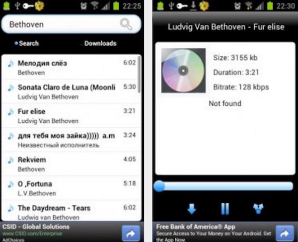 Advanced Download Manager is a very powerful downloading application for Android devices, Along with music you can download any other files, it allows to download three files at the same time, and you can pause any download and resume later. There is an inbuilt browser with the multi-tab support that you can use to browse music, videos or any other files, or simply put the download link, and it will download the file.