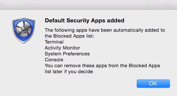 - Once you click on submit, you will get 2 popup notification : First to tell you that a lock icon in the menu bar has been added, and you can click on it to access Mac App Blocker. Second to inform you that some apps has been automatically added to the protected list. You can remove them later if you want